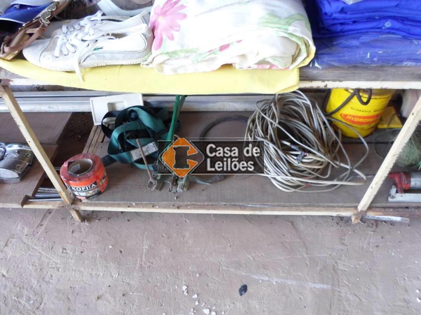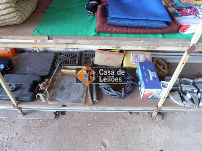 01 PRATELEIRA (2,60 X 5,18 X 0,60) COM BENS DIVERSOS, SENDO: FERRAMENTAS, FECHADURAS, UNIFORMES, CALÇADOS, BONÉS, COLCHAS, DISCOS DE VINIL, MATERIAIS PARA ESCRITORIO, PRATELEIRA DE FERRO, E OUTROS