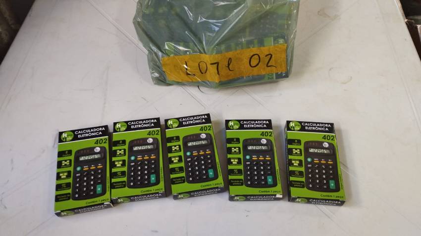 Lote: 002 - OUTROS BENS » VARIEDADES 20 CALCULADORAS ELETRÔNICA - 402 - 8 DÍGITOS DISPLAY - MEMÓRIA .