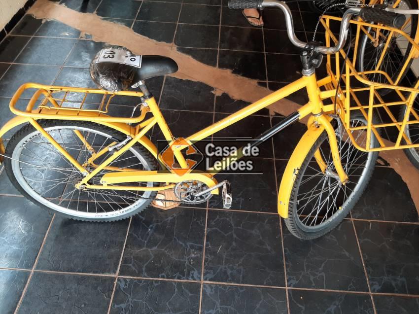 Lote: 003 - BENS MÓVEIS » DIVERSOS 01 BICICLETA RETRO AMARELA COM CESTINHA E GARUPA