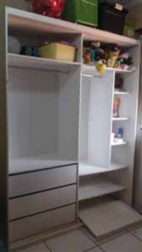 Lote: 007 - BENS MÓVEIS » MÓVEIS DIVERSOS GUARDA ROUPA C/2 PORTAS DE CORRER| 3 GAVETAS| 1 SAPATEIRA – DESMONTADO COM TODOS OS PARAFUSOS E PEÇAS NECESSÁRIAS PARA MONTAR
