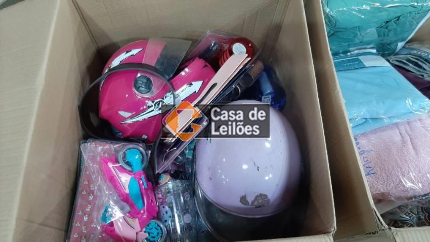 04 CAIXAS, CONTENDO PEÇAS DE CONFECÇÕES DIVERSAS, SENDO: 01 CAIXA DE ROLOS DE PELOS, 01 CAIXA DE ACESSÓRIOS, 01 CAIXA DE CAÇALDOS E 01 CAIXA DE CAMA, MESA E BANHO (PODEM APRESENTAR: MODELOS MASC/FEM/INF, DEFEITOS, AVARIAS, AUSENCIA DE PARES, ETC.)