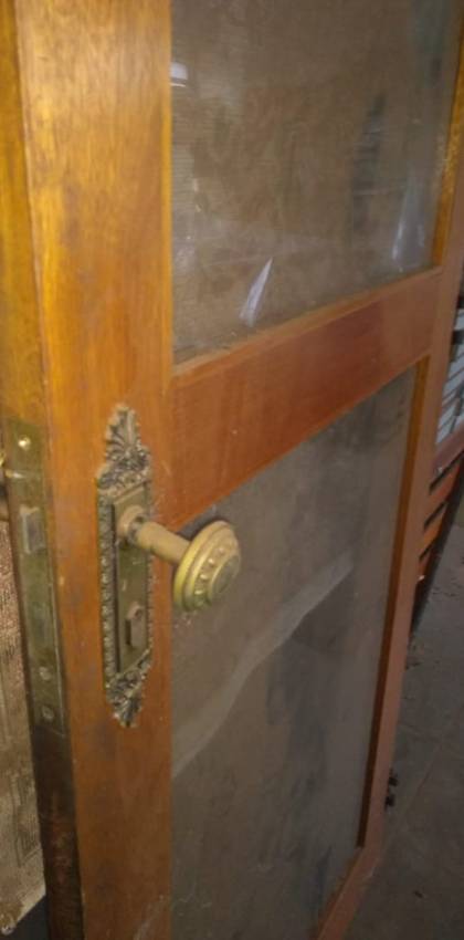 Lote: 010 - BENS MÓVEIS » MÓVEIS DIVERSOS 01 PORTA COM MOLDURA DE MADEIRA COM CENTRO DE VIDRO
