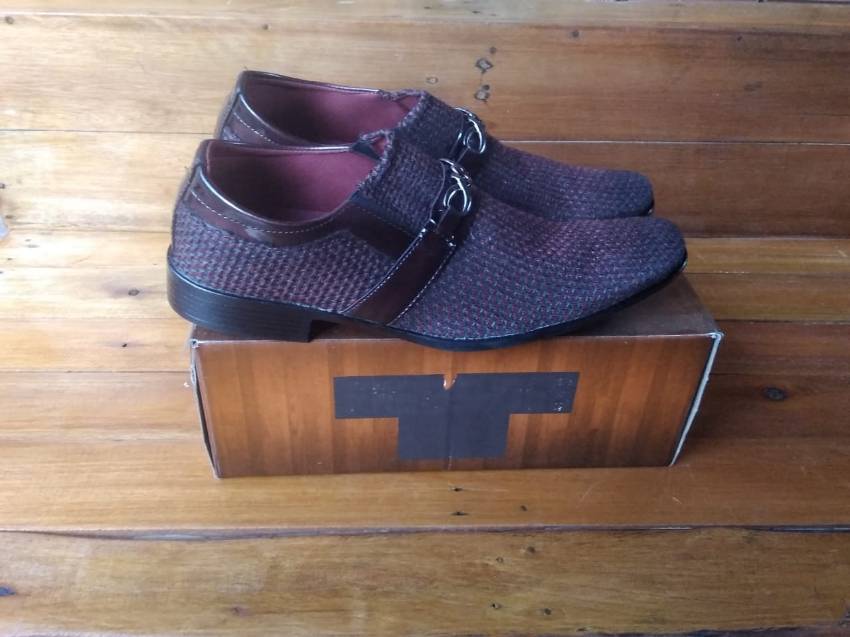 01 PAR DE SAPATO SOCIAL, MARCA: SHOES, NUMERAÇÃO:43, COR: VINHO, MATERIAL: CAMURÇA