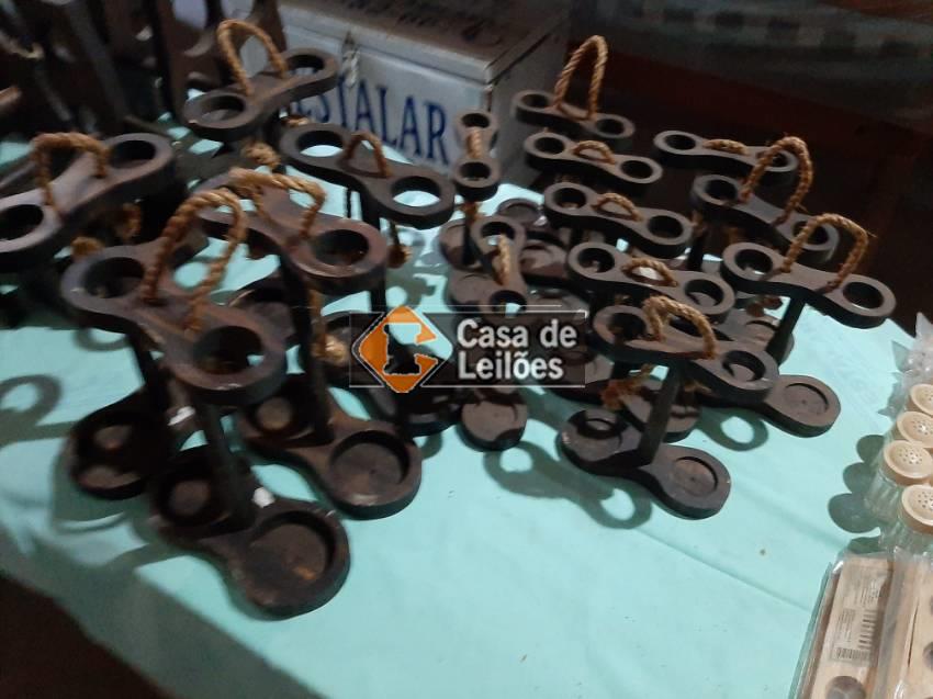 Lote: 014 - BENS MÓVEIS » MÓVEIS DIVERSOS DIVERSOS SUPORTES PARA 02 GARRAFAS DE VINHO COM ALÇA DE CORDA