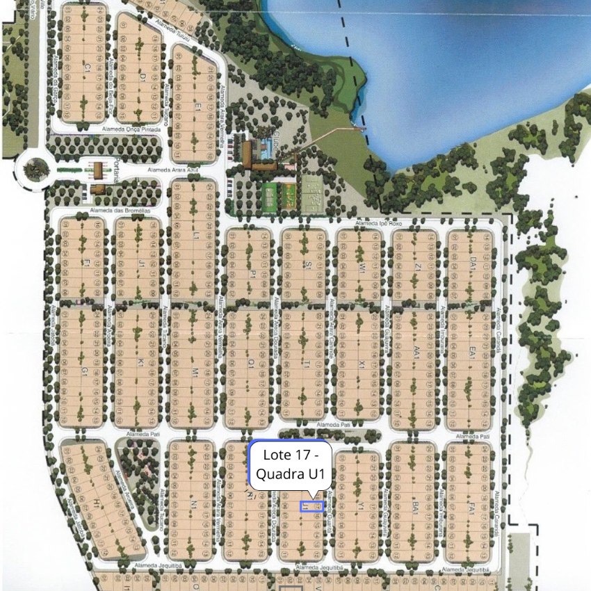 LOTE Nº 15 – IMÓVEL Registrado sob a Matricula nº 7.973 (Matrícula anterior n. 148.750) do 1º Registro de Imóveis de Dourados-MS, qual seja, um terreno determinado pelo Lote n° 17 (dezessete) da Quadra U1 (U-um), situado no Loteamento denominado "TERRAS ALPHAVILLE DOURADOS FASE I", perímetro urbano desta cidade, de formato regular, situado na Alameda Guaritá, n° 55, portanto lado impar, distante 62,02m da Alameda Pati, com área de 324,00m² (trezentos e vinte e quatro metros quadrados), avaliado no valor de R$ 140.000,00 (cento e quarenta mil reais) na data de 07/11/2024, conforme Auto de Avaliação de fls. 717;