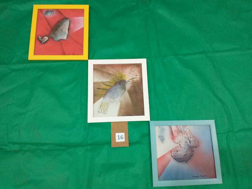 Lote: 016 - ANTIQUÁRIO » OBRA ARTÍSTICA 03 OBRAS DE FERNANDO LUIZ – (SEM NOME) - 20 X 20 CM - OLÉO SOBRE TELA - INSCRIÇÃO NO CANTO INFERIOR DIREITO – ANO 1992.