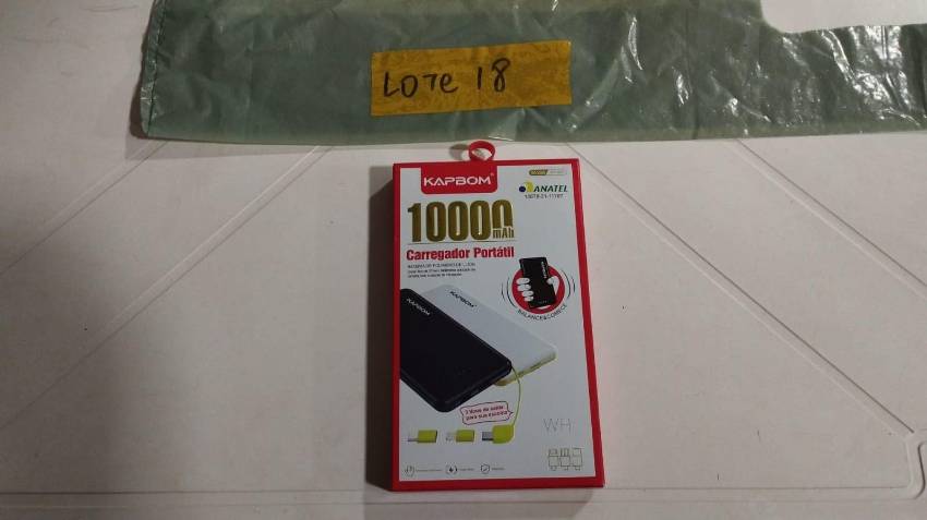 Lote: 018 - OUTROS BENS » VARIEDADES 01 CARREGADOR PORTATIL 10000 MAH KAPBOM COM SELO ANATEL