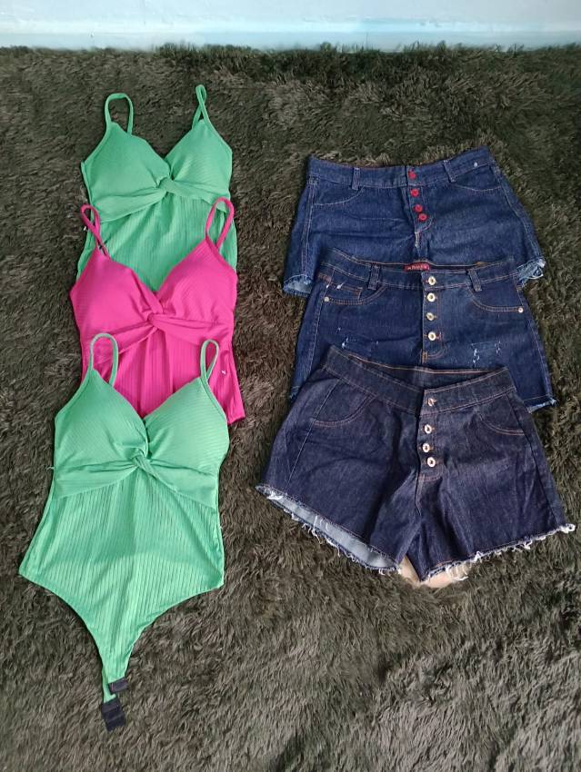 Lote: 018 - CONFECÇÕES » ROUPAS 03 SHORTS JEANS E 03 BODY