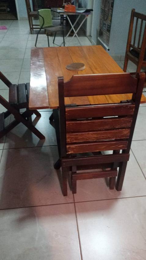 Lote: 023 - BENS MÓVEIS » MÓVEIS DIVERSOS 01 CONJUNTO DE MESA COM 06 CADEIRAS MADEIRA MACIÇA