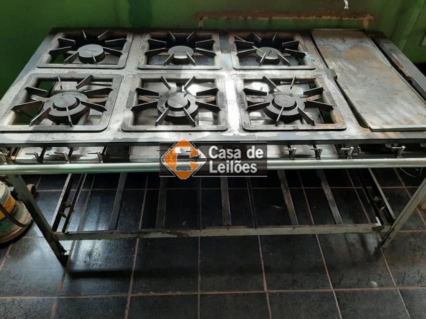 Lote: 027 - BENS MÓVEIS » MÓVEIS DIVERSOS 01 FOGÃO INDUSTRIAL 6 BOCAS COM CHAPA