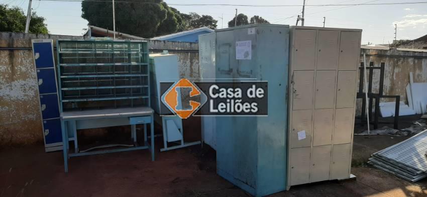 Lote: 034 - BENS MÓVEIS » MÓVEIS DIVERSOS 08 ARMÁRIOS DE AÇO E 03 ESTAÇÕES DE TRABALHO DE FERRO (COMPOSTA POR MESA COM GAVETA E ESTANTE DE 30 DIVISÓRIAS CADA)