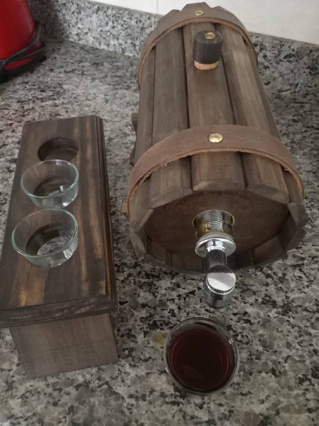 01 KIT BAR BARRIL PARA BEBIDAS DESTILADAS COMPLETO COM COPOS E SUPORTE