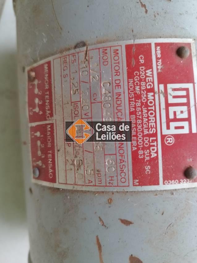 Lote: 04 - BENS MÓVEIS » MÓVEIS DIVERSOS MOTOR INDUÇÃO MONOFÁSICO WEG 1/2 CV