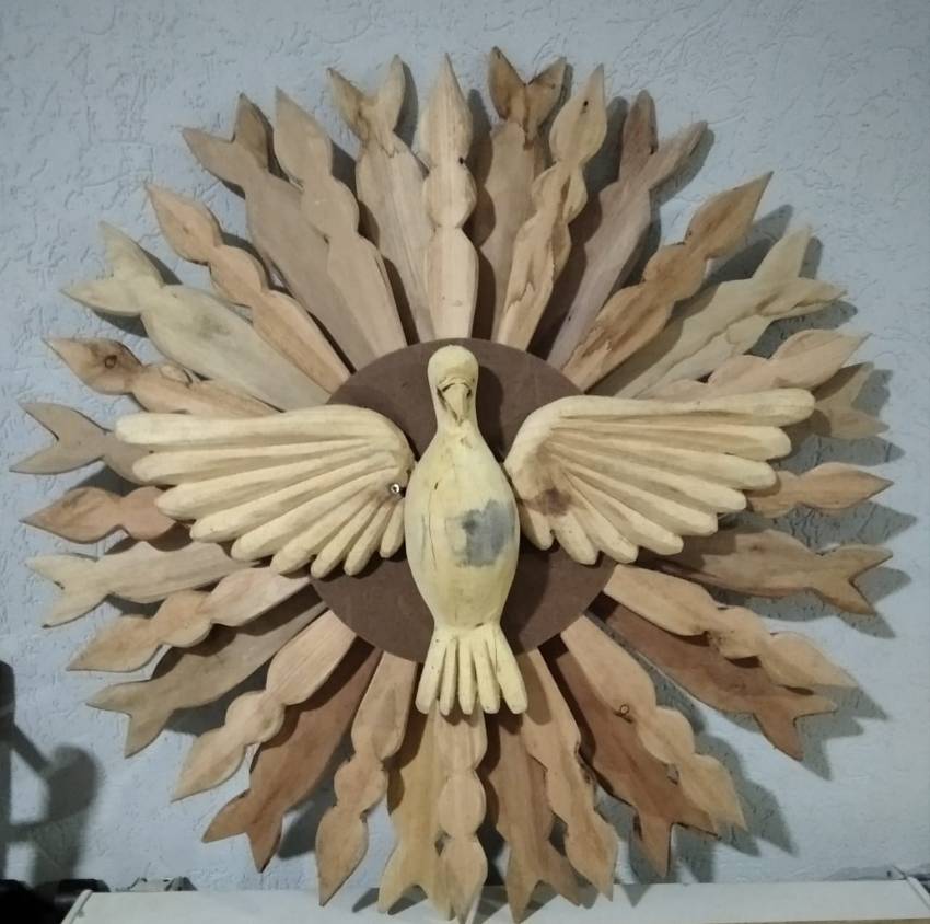 ESPÍRITO SANTO EM MADEIRA TALHADA A MÃO, MEDINDO 80 X0,80 DUAS CAMADAS