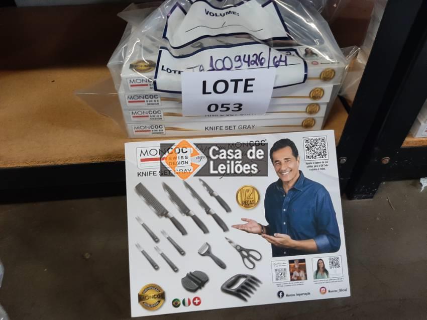 Lote: 053 - BENS MÓVEIS » DIVERSOS 4 UND DE ITENS: CONJUNTO DE FACAS E ACESSÓRIOS - COR CINZA
