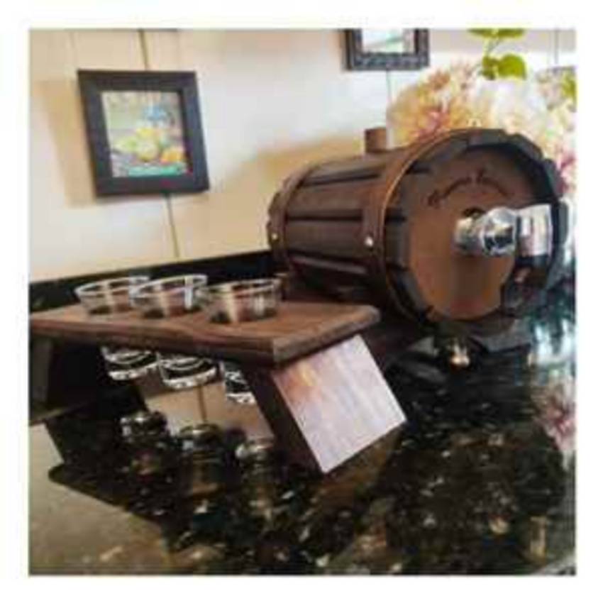 01 KIT BAR BARRIL PARA BEBIDAS DESTILADAS COMPLETO COM COPOS E SUPORTE