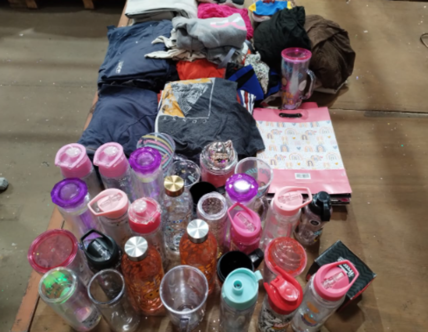 01 CAIXA MEDINDO 56X52X52 CM, CONTENDO PEÇAS E ACESSÓRIOS DIVERSOS, SENDO: GARRAFAS / COPOS / ROUPAS MASCULINO / ROUPAS FEMININA / CAPA DE SOFÁ E/OU ACESSÓRIOS (PODEM APRESENTAR: DEFEITOS, AVARIAS, AUSENCIA DE PARES, NUMERAÇÕES DIVERSAS, E OUTROS)