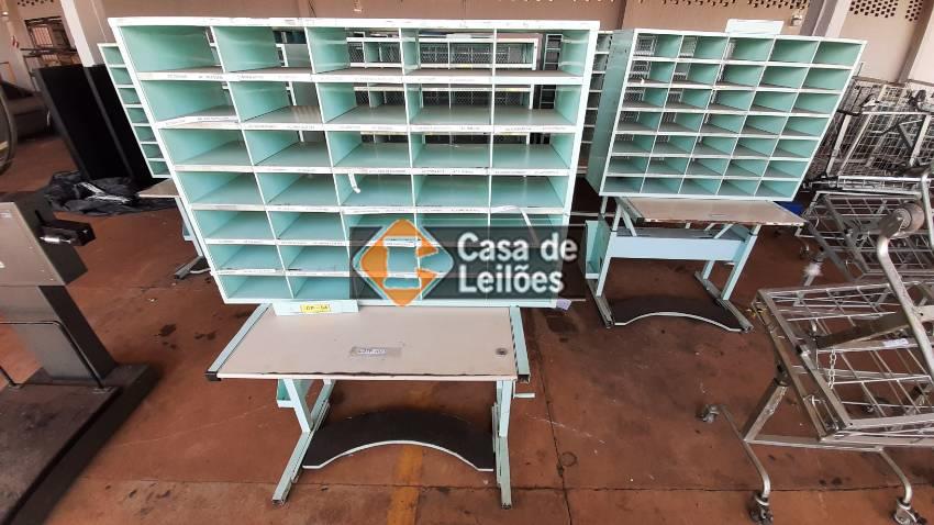 Lote: 102 - BENS MÓVEIS » MÓVEIS DIVERSOS 01 ESTAÇÃO DE TRABALHO DE FERRO (COMPOSTA POR MESA E ESTANTE DE APROX. 35 DIVISÓRIAS CADA)