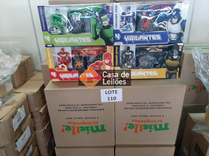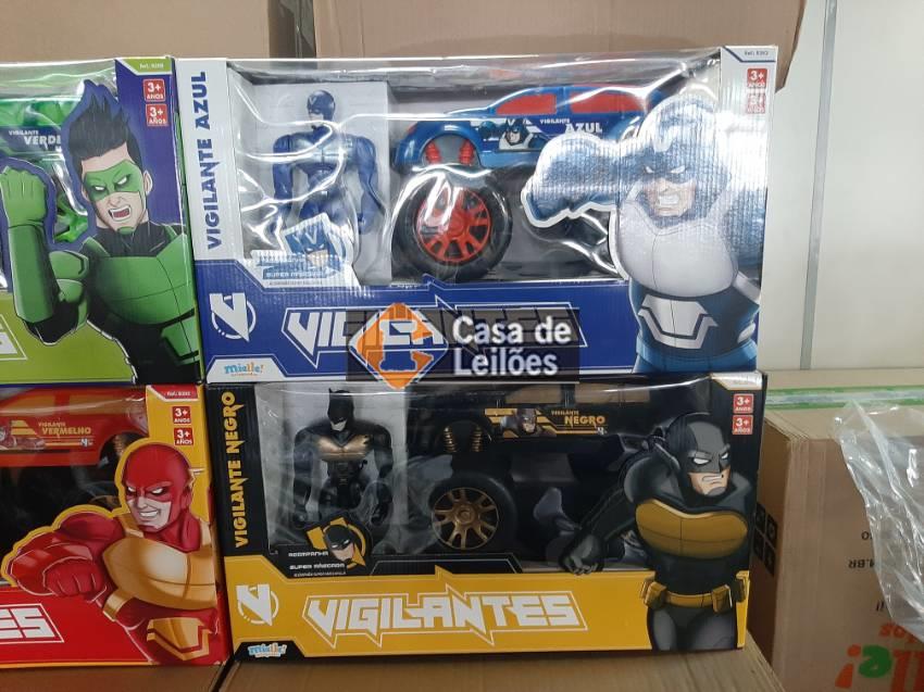 Lote: 110 - BENS MÓVEIS » DIVERSOS 48 UND DE ITENS: BONECO COM CARRO SUPER VIGILANTE (AZUL, VERDE, NEGRO, VERMELHO - 12 UND CADA).