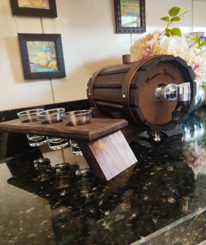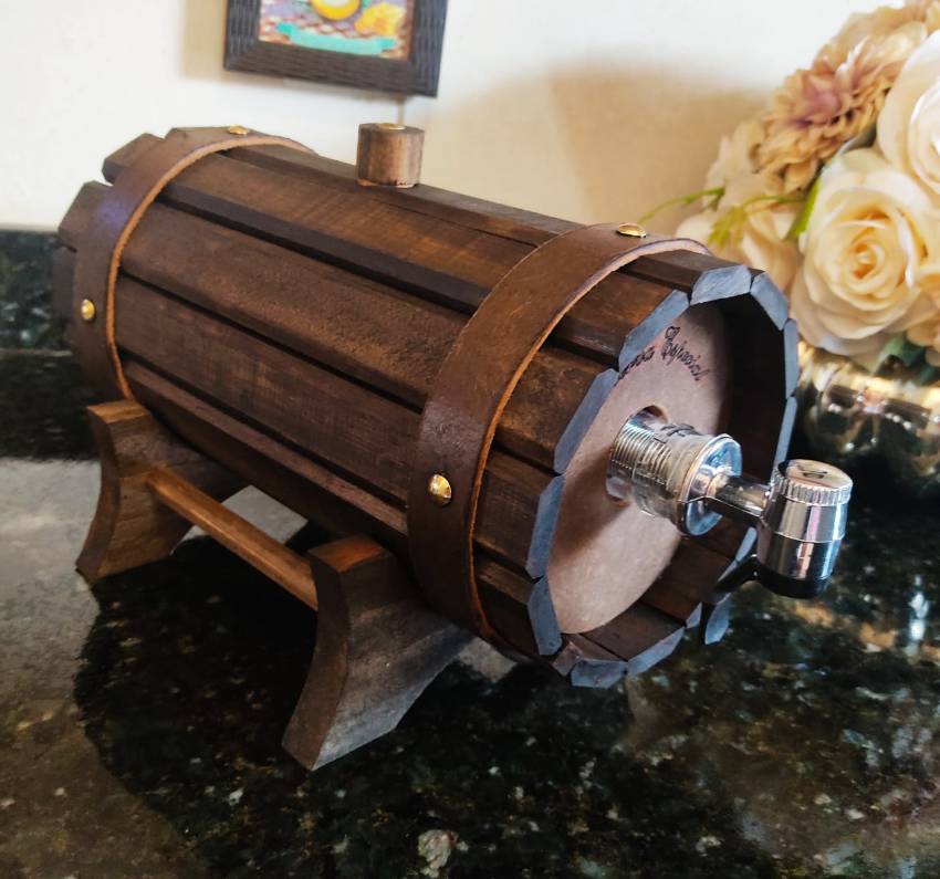 01 KIT BAR BARRIL PARA BEBIDAS DESTILADAS COMPLETO COM COPOS E SUPORTE