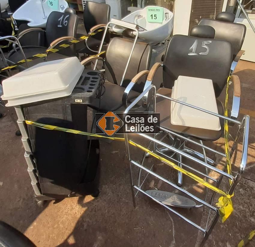 Equip. para salão de beleza: Lavatório, cadeiras hidráulicas com rodízio, carrinhos auxiliares.