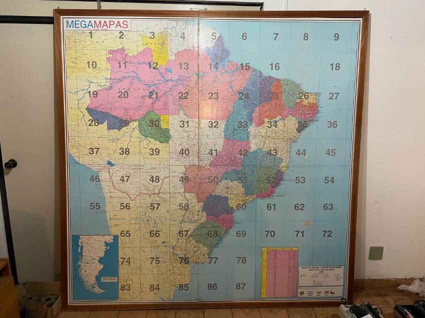 Lote: 182 - BENS MÓVEIS » MÓVEIS COMERCIAIS MAPA DO BRASIL 2,20X2,20 BASE EM CORTIÇA E EMOLDURADO