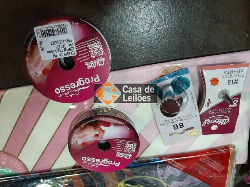 Lote: 219 - BENS MÓVEIS » DIVERSOS 44 UND DE ITENS: ACESSÓRIOS E EMBALAGENS PARA DOCES: 14 UND FORMA DE SILICONE PARA OVO; 02 PCT SACO 39X39 C/ 25; 01 PCT PAPEL CHUMBO C/ 50 UND; 04 UND BICOS DE CONFEITAR; 14 PCT EMBALAGENS; 08 UND FITA DE CETIM; 01 UND GRANULADO 2,5KG (VAL. 07/2024)