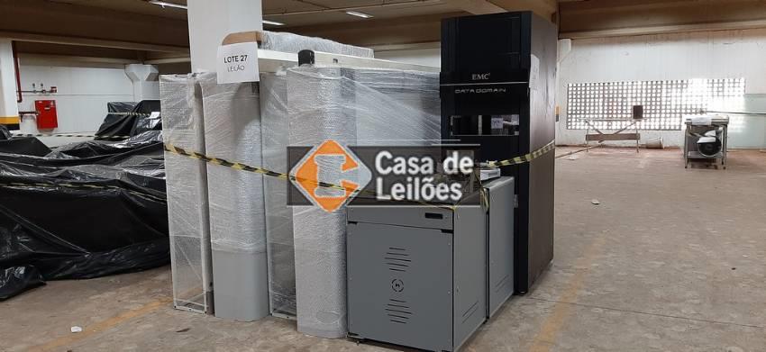 Rack para servidor, rack para guarda de computador, quadro multimídia retrátil e tela de projeção.