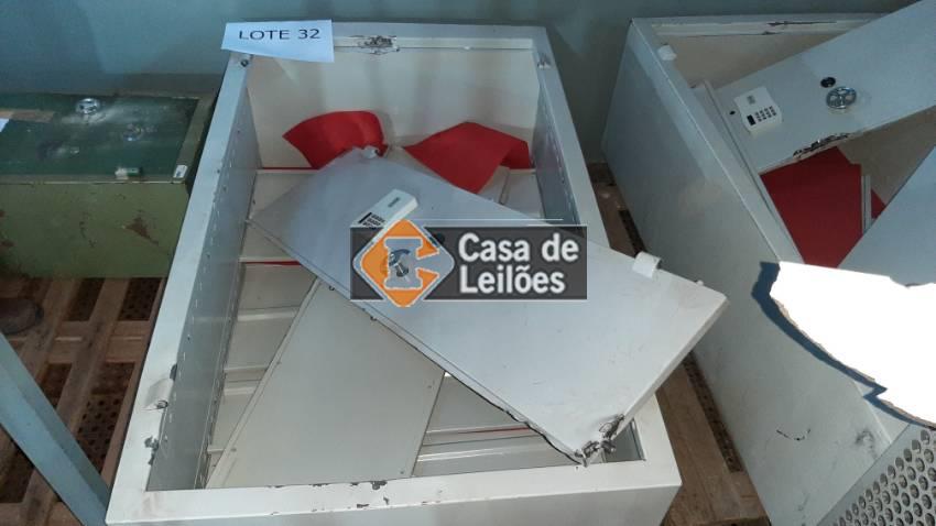 Lote: 32 - BENS MÓVEIS » MÓVEIS DIVERSOS 01 ARMÁRIO COFRE DIGITAL COM PRATELEIRA (APRESENTA: DEFEITOS, AVARIAS E OUTROS)