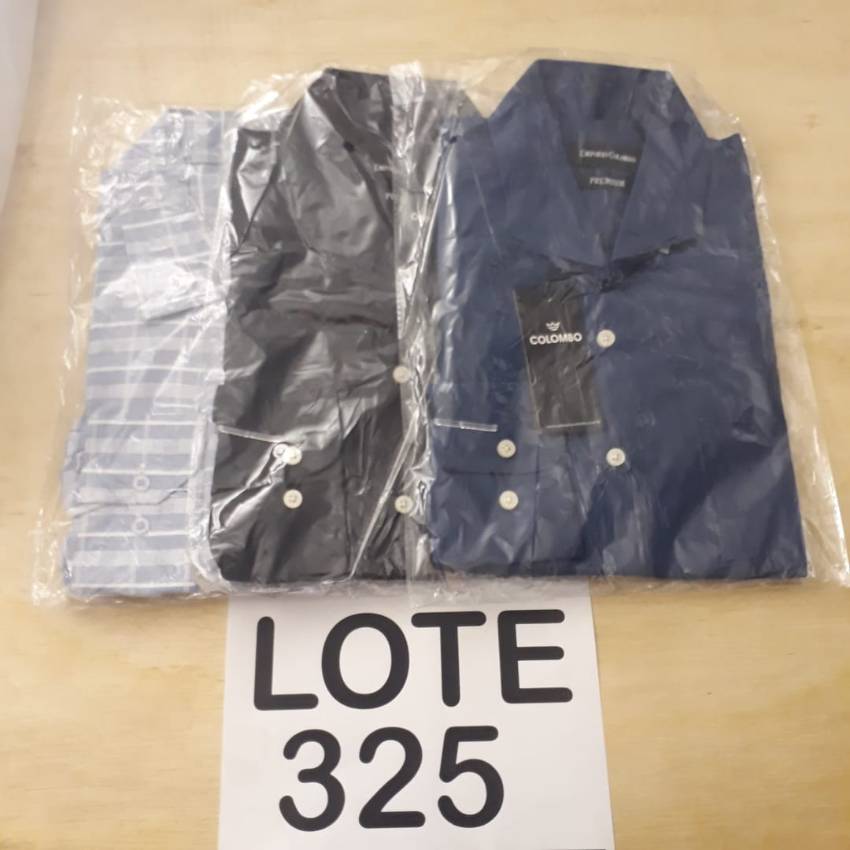 Lote: 325 - OUTROS BENS » VARIEDADES 3 CAMISAS DE MODELO SOCIAL MASCULINA TAMANHOS DIFERENTES