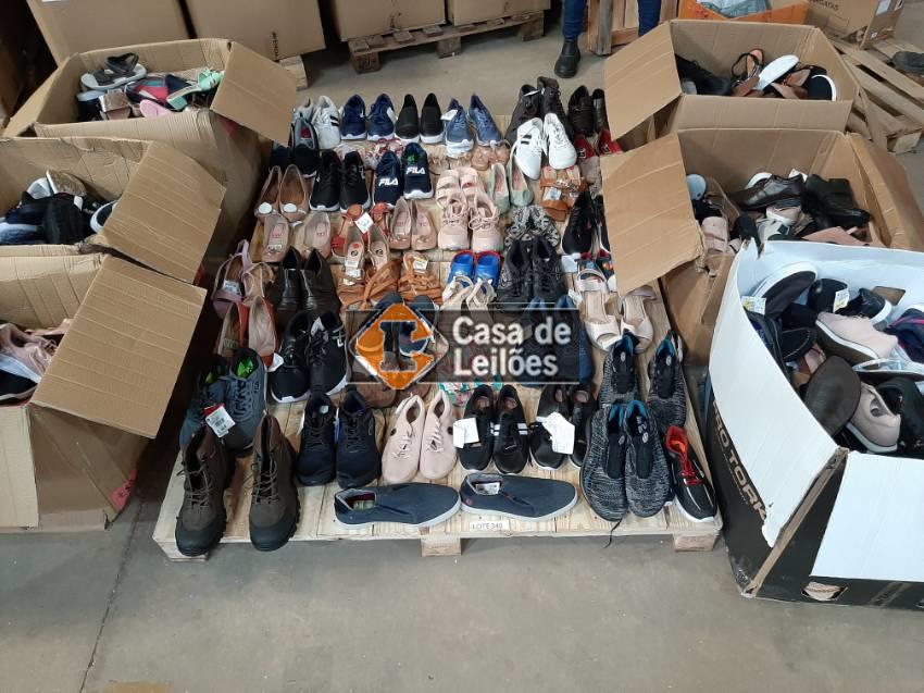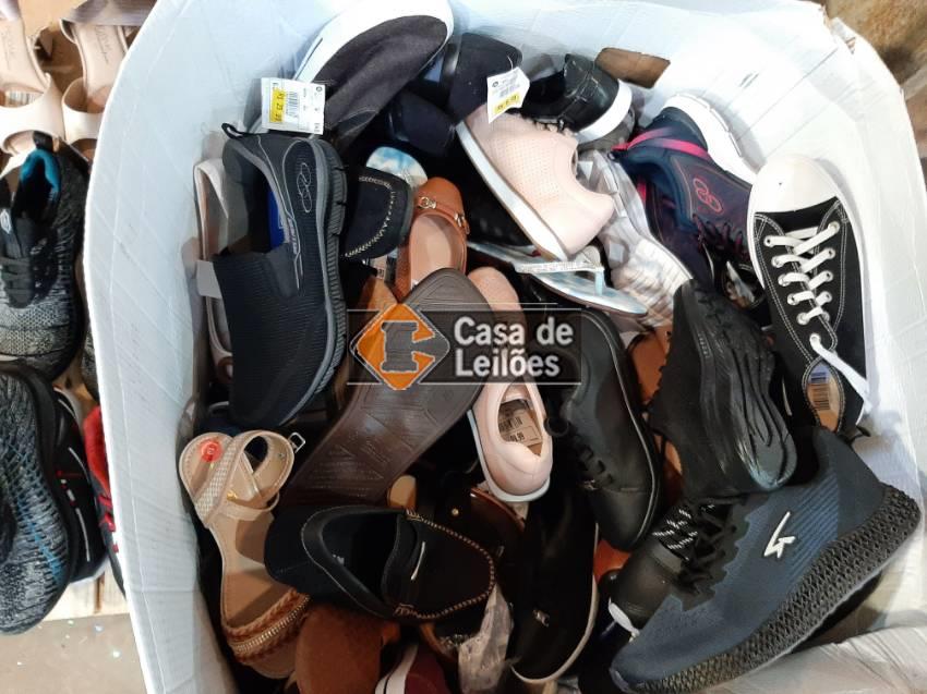 DIVERSAS CAIXAS, CONTENDO PEÇAS DE CALÇADOS DIVERSAS (PODEM APRESENTAR: MODELOS MASC/FEM/INF, DEFEITOS, AVARIAS, AUSENCIA DE PARES, NUMERAÇÕES DIVERSAS,  E OUTROS)
