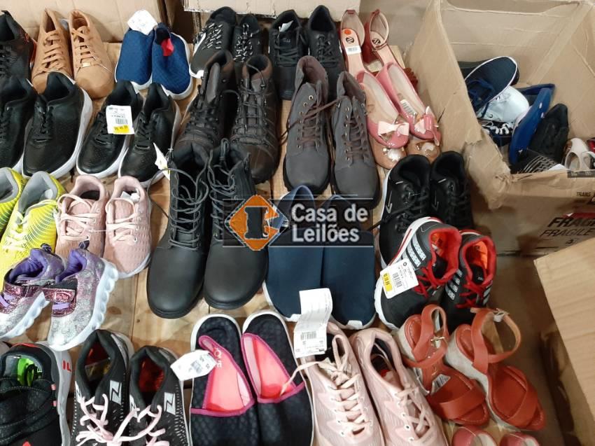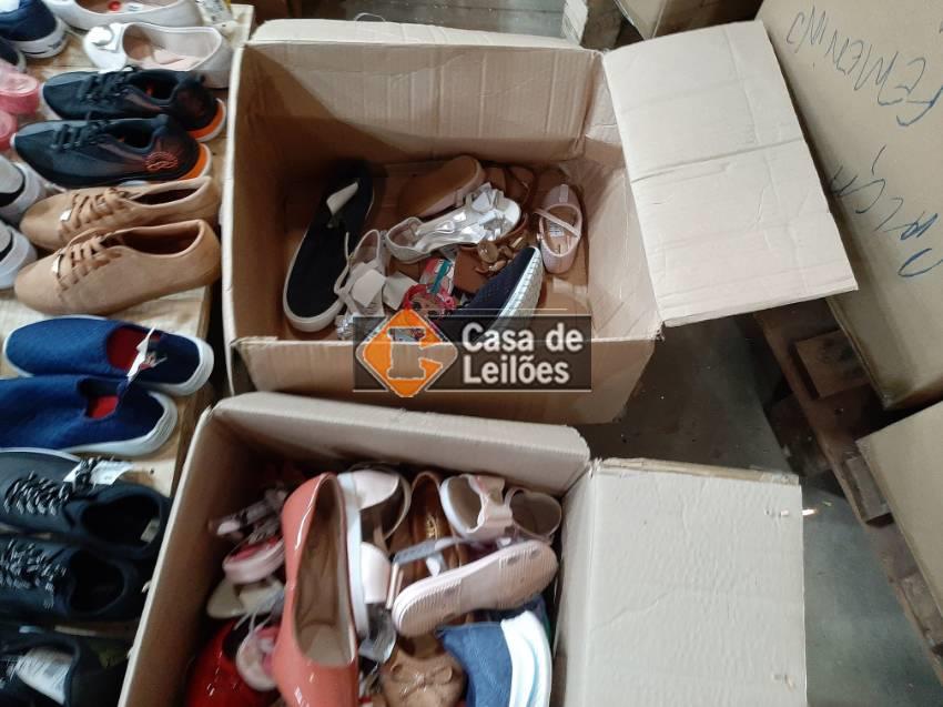 DIVERSAS CAIXAS, CONTENDO PEÇAS DE CALÇADOS DIVERSAS (PODEM APRESENTAR: MODELOS MASC/FEM/INF, DEFEITOS, AVARIAS, AUSENCIA DE PARES, NUMERAÇÕES DIVERSAS,  E OUTROS)