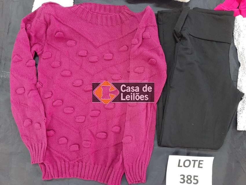 Lote: 385 - BENS MÓVEIS » DIVERSOS 80 UND DE ITENS: CONFECÇÕES FEMININAS VARIADAS: 40 UND CALÇAS LEGGING; 17 UND BLUSAS TRICOT ML; 06 UND CASACOS; 05 UND VESTIDOS; 04 UND CONJUNTOS; 08 UND OUTROS (CROPPED, CALÇAS, SAIAS).