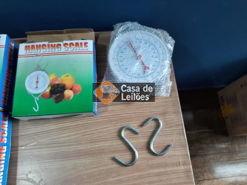 Lote: 51 - OUTROS BENS » VARIEDADES 05 BALANÇAS SUSPENSA TIPO RELÓGIO 200 KG COM GANCHO