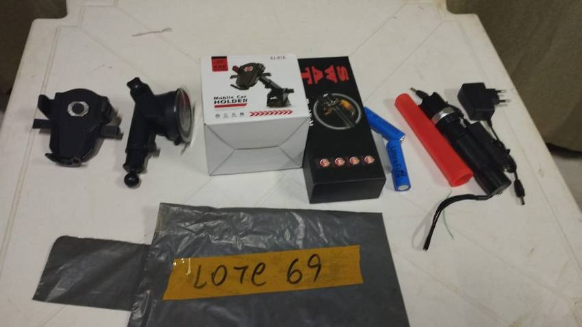 Lote: 69 - BENS MÓVEIS » DIVERSOS 01 LANTERNA SWAT FLASHLIGHT - 01 MOBILE SUPORTE CELULAR CAR